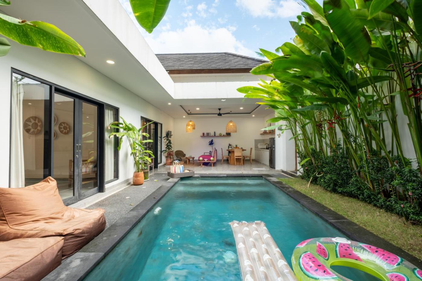 Guests can enjoy the indoor pool and garden at AGATE VILLA - 5Min to Canggu - 1Min to Shops & Restaurants.