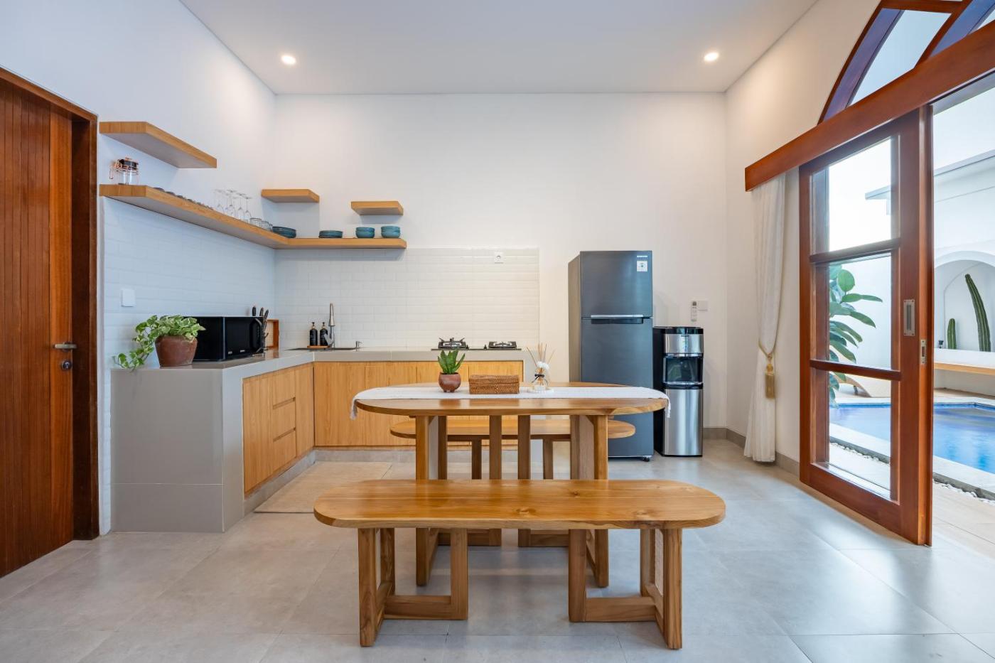 Three-Bedroom Villa. The private pool is the standout feature of this villa. This spacious villa features 1 living room, 3 separate bedrooms and 3 bathrooms with a shower and free toiletries. Guests can make meals in the fully equipped kitchen that has a refrigerator, a microwave and a toaster. The air-conditioned villa features a flat-screen TV, a private entrance, a seating area, a dining area as well as garden views. The unit has 3 beds.