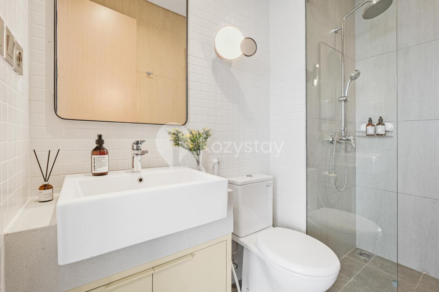 Two-Bedroom Apartment. The well-equipped kitchen has a stovetop, a refrigerator, kitchenware and a microwave. The spacious air-conditioned apartment features a flat-screen TV with streaming services, a washing machine, a dining area, a wardrobe as well as city views. The unit has 2 beds.