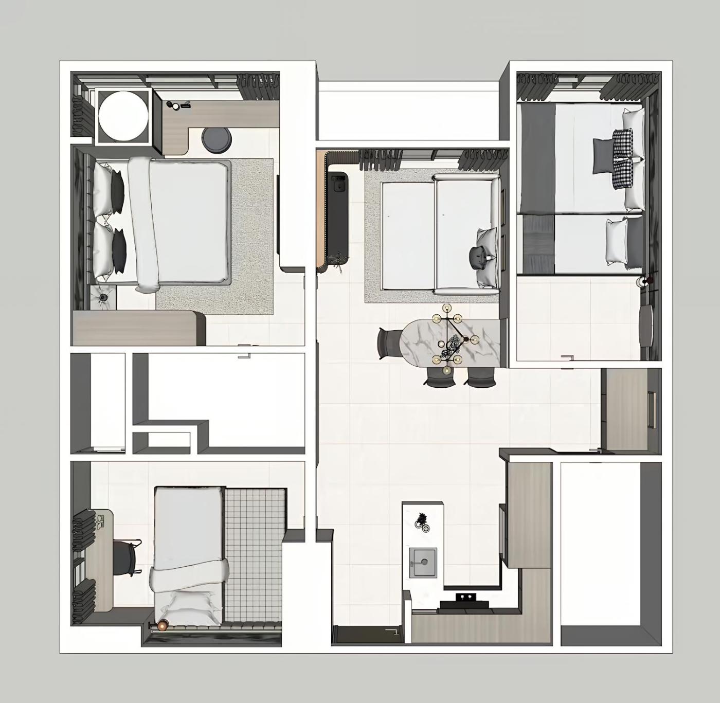 Three-Bedroom Apartment. This spacious apartment includes 1 living room, 3 separate bedrooms and 2 bathrooms with a shower and free toiletries. Guests can make meals in the kitchen that has a stovetop, a refrigerator, kitchenware and a microwave. The air-conditioned apartment offers a flat-screen TV with streaming services, a washing machine, a seating area, a dining area as well as city views. The unit has 6 beds.