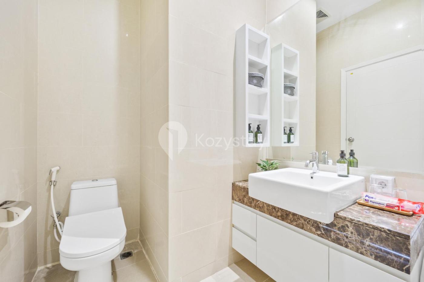 Two-Bedroom Apartment. The private pool is the standout feature of this apartment. This spacious apartment comes with 1 living room, 2 separate bedrooms and 2 bathrooms with a bath and free toiletries. The fully equipped kitchen has a stovetop, a refrigerator, kitchenware and a microwave. The air-conditioned apartment features a flat-screen TV with streaming services, a washing machine, a dining area, a wardrobe as well as city views. The unit has 3 beds.