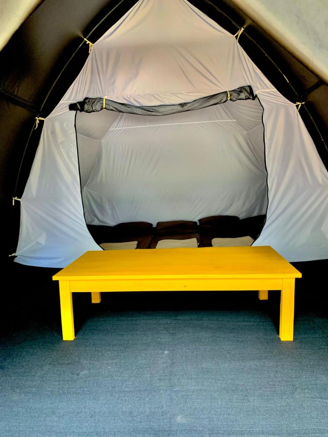 Tent. The fireplace is the standout feature of this tent. This tent has a seating area, a terrace, garden views and a shared bathroom. The unit has 2 beds. ;