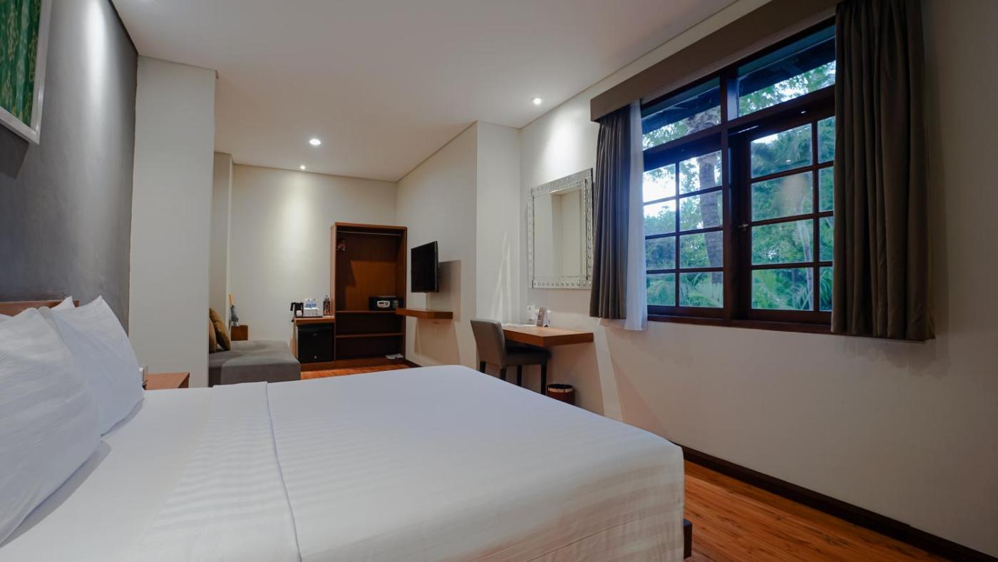 Modern rooms at Grand Whiz Hotel Nusa Dua Bali are air-conditioned and fitted with a flat-screen TV, safety deposit box, electric kettle and a fridge with a minibar. Rooms also come with a terrace with seating area overlooking the garden. The private bathrooms have shower facilities and free toiletries.