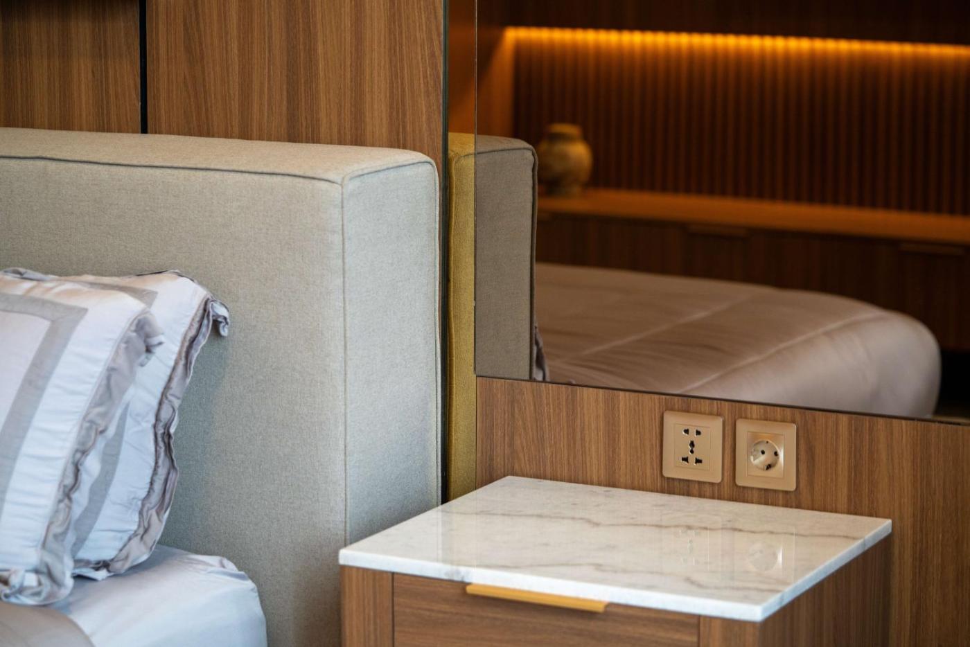 Three-Bedroom Villa. The private pool is the special feature of this villa. Featuring a private entrance, this air-conditioned villa comprises a kitchen, 3 bedrooms and 3 bathrooms with a bath or a shower and a hairdryer. In the well-fitted kitchen, guests will find a stovetop, a refrigerator, a microwave and a toaster. Boasting a terrace with ancourtyard view, this villa also provides a washing machine and a flat-screen TV. The unit offers 3 beds. ;