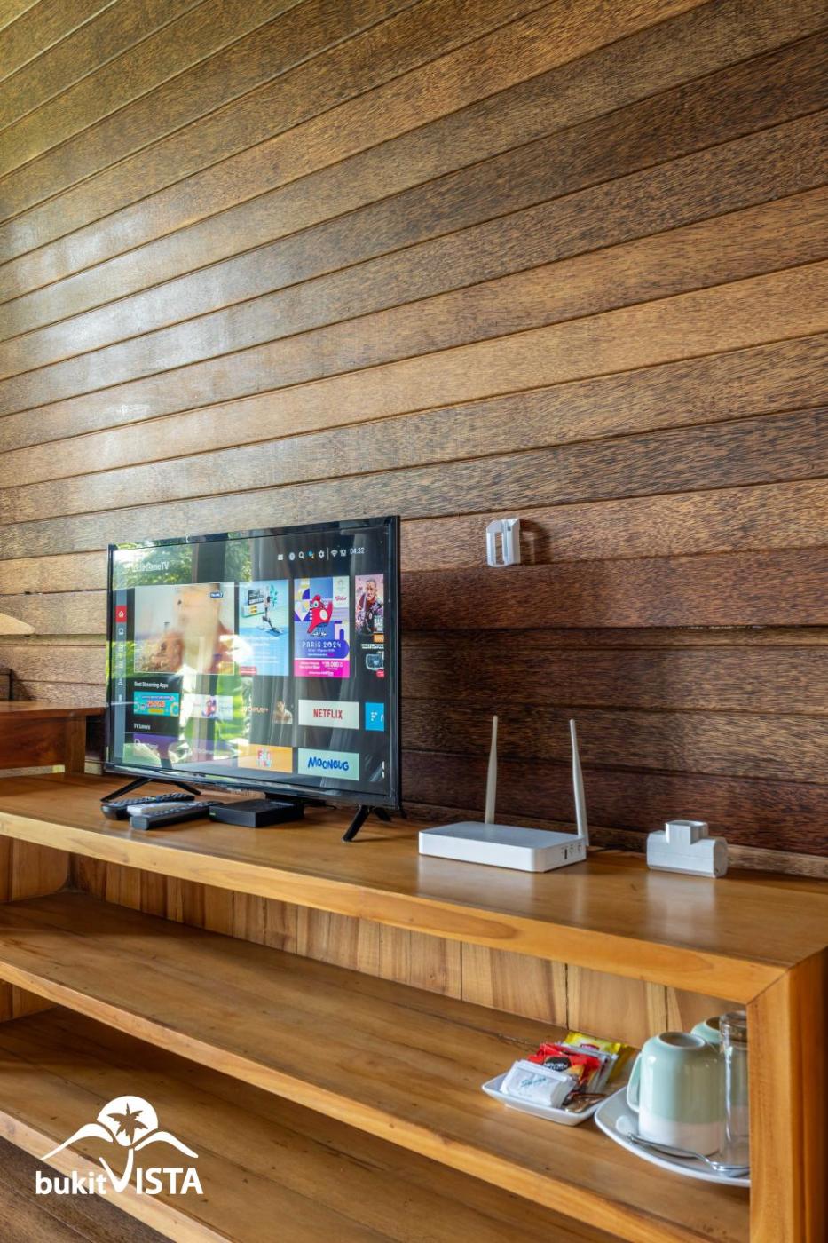 The lodge features a satellite flat-screen TV.