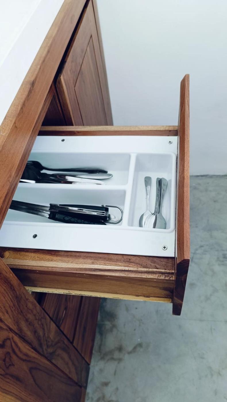 The air-conditioned holiday home is composed of 1 separate bedroom, a fully equipped kitchen, and 2 bathrooms.